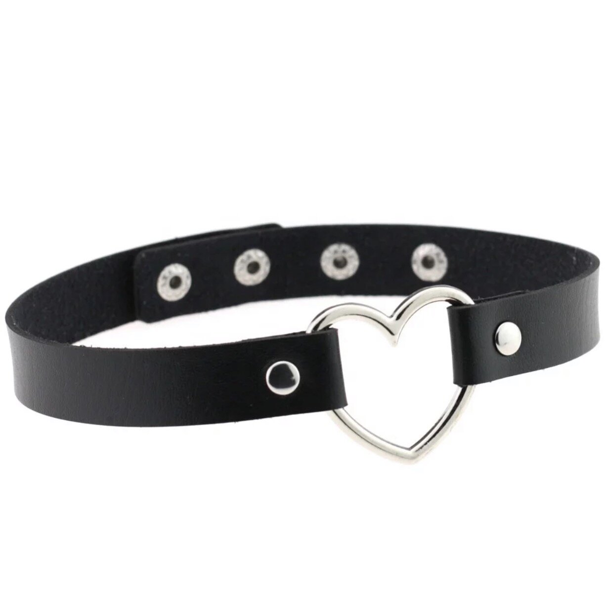 Minimal, classic, playful. The thin leather band is accented by a shiny heart in the center, with a delicate buckle which clasps at the back of the neck.
